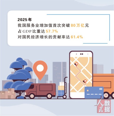 服务业是我国国民经济第一大产业,在经济社会发展全局中占据重要地位。去年,我国服务业成绩单亮眼:增加值首次突破80万亿元,占GDP比重达57.7%,对国民经济增长的贡献率达61.4%。今年,《政府工作报告》将“扩能提质服务业”作为全年工作重点之一。国务院办公厅1月印发的《加快培育服务消费新增长点工作方案》,从激发重点领域发展活力、培育潜力领域发展动能、加强支持保障三方面提出12项具体举措。一系列政策支持的针对性有效性进一步增强,为服务业发展营造了良好环境。期待越来越多的服务“老业态”长出“新生态”,续写服务业高质量发展新篇章。