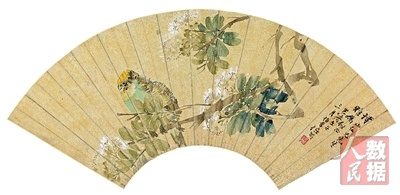中国画《梨花鹦鹉》,作者任伯年,中国美术馆藏。